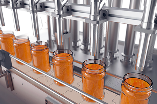 全自動濃醬灌裝機被廣泛應用于醬類、食品、日化等,可以灌裝辣醬、番茄醬、蜂蜜、果醬、含果肉飲料等。采用伺服控制,計量精度高,運行穩定,物料不會噴出。