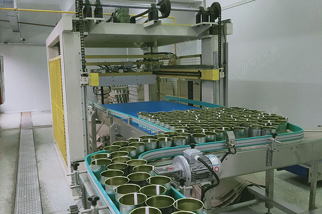 空罐卸垛機——磁力洗罐機——鼓泡清洗機——預煮機——流槽冷卻機——量杯灌裝機——淋湯機——封罐機——裝卸籠機——滾杠巴氏殺菌機——風刀——臥式貼標機——開箱機——裝箱機——封箱機——紙箱碼垛機