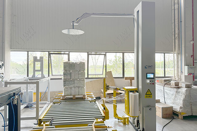 對碼垛后的產品進行纏繞,增強穩固性。