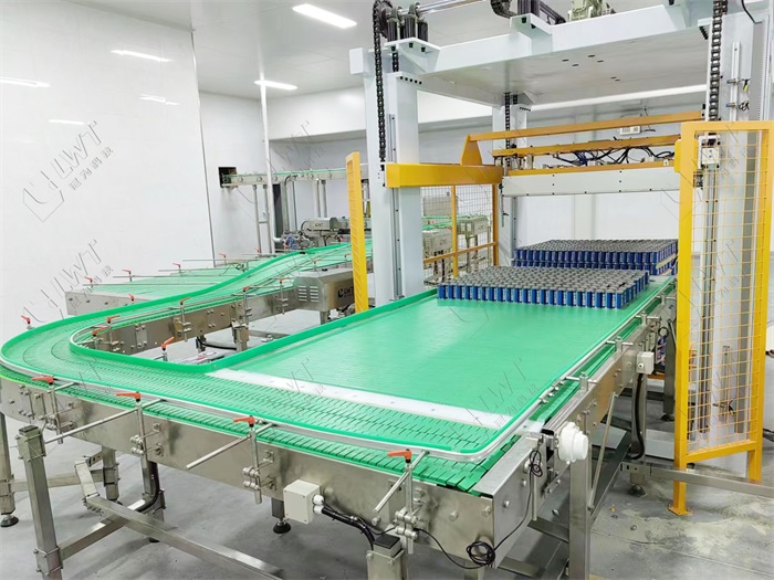 清洗 -> 2. 去皮 -> 3. 打漿/破碎 -> 4. 調(diào)配 -> 5. 融糖 -> 6. 均質(zhì) -> 7. 預(yù)熱 ->8. 空罐卸垛 -> 9. 空罐清洗(高壓噴淋) -> 10. 空罐吹干/瀝干 ->11. 自動灌裝 -> 12. 抽真空/蒸汽噴射(排除罐頂空氣) -> 13. 真空封口 ->14. 殺菌 -> 15. 冷卻 -> 16. 吹干(去除表面水漬)-> 17. 噴碼 -> 18. 貼標(biāo) -> 19. 自動開箱 -> 20. 自動裝箱 -> 21. 自動封箱 -> 22. 機(jī)器人碼垛 -> 23. 成品入庫