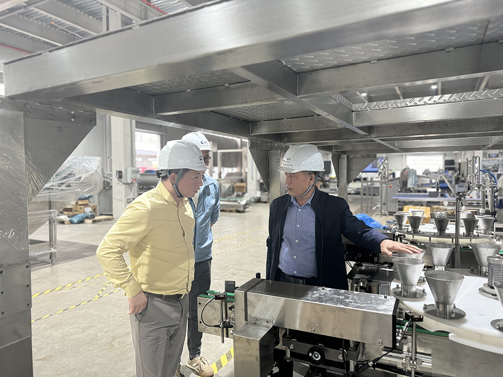 在現代化生產車間,劉有千理事長見證了尼為智能的高效運作與精工工藝,對尼為在提升生產效率、降低能耗成本的顯著成效印象深刻。座談中,劉有千理事長肯定了尼為智能對罐頭工業的貢獻,并強調智能制造對產業升級的重要性。他表示,中國罐頭工業協會將持續支持尼為智能等優秀企業,促進業內交流合作。